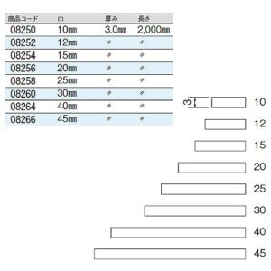 主にコの字型、アングル型、薄板材、四角棒、管、棒材、厚板(フラットバー)などの形状があります。